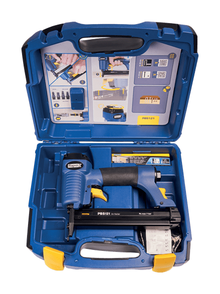 Conçue pour les bricoleurs exigeants, la PBS121 est une agrafeuse cloueuse pneumatique de très bonne qualité, très polyvalente, parfaite pour des travaux intensifs sur des panneaux de bois, la pose de plinthes, la réparation et finition de meubles. Elle possède un corps solide et léger en magnésium et un système d’échappement d’air orientable à 360° qui permet d’éviter tout résidu sur la surface travaillée. Possède un système de réglage de pénétration, et de chargement rapide, une poignée confortable, le tout pour obtenir de bons résultats dans les travaux. Comprend également un embout de protection, pour protéger la surface travaillée. Livrée dans un coffret de protection, pratique pour le rangement et le transport qui comprend un guide de démarrage vous aidant à utiliser l’outil correctement et à trouver l’agrafe ou la pointe correspondante au moment de recharger. Inclus également 4 raccords pneumatiques et un set de 200 agrafes et de 200 pointes.