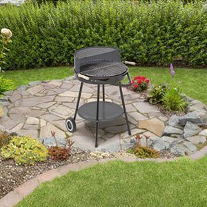 Chariot de barbecue Santa Fe avec grille de barbecue chromée d´environ Ø48 cm de suface de grillade et la cuve de feu émaillée.