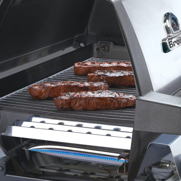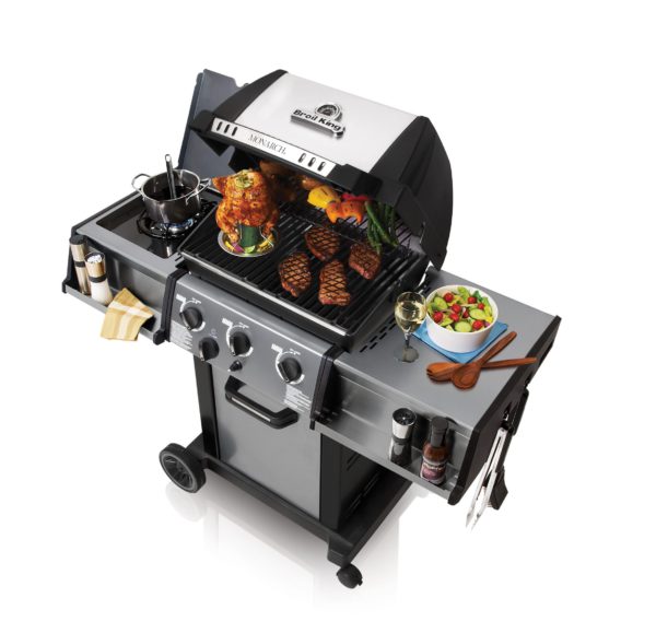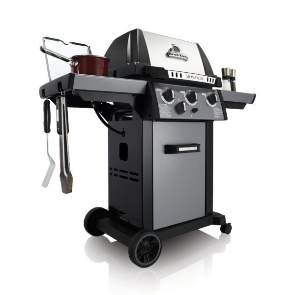 Le barbecue Monarch 340 comprend des grilles en fonte massive, le système de vaporisation Flav-R-Wave, 3 brûleurs en acier inoxydable double-Tube (8.8 kW), ainsi que des étagères latérales rabattables noir, un châssis fermé et une porte noire. Le boîtier est entièrement fabriqué en aluminium moulé sous pression, ce qui permet un excellent stockage de la chaleur.