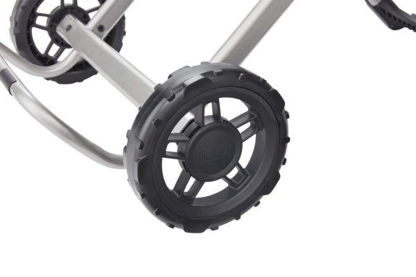 - la roue extérieure recouverte de caoutchouc assure un transport en douceur et silencieux du barbecue.