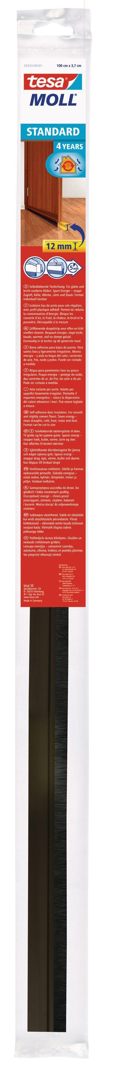 Pendant l’hiver, il est important de garder la chaleur à l’intérieur et de prévenir les courants d’air. tesa® Calfeutrer Bas de porte adhésif Spécial sols lisses vous permet de combler efficacement l’espace entre le battant de porte et le sol sans utiliser ni perceuse, ni tournevis. Ce bas de porte en plastique est disponible en plusieurs couleurs. Sa longueur peut être adaptée au battant de porte. Doté d’une brosse en nylon résistante à l’abrasion, il agit à la manière d’un joint pour combler efficacement les espaces de jusqu’à 12 mm.