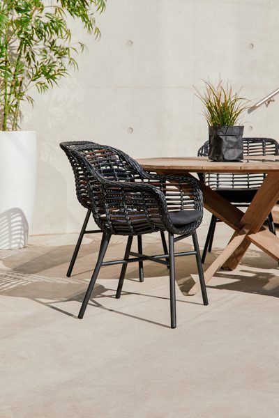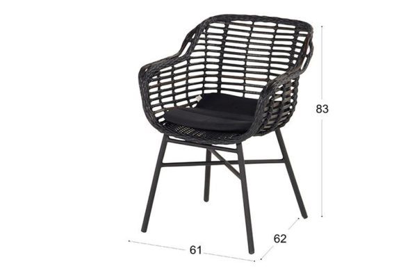 Le siège en osier est doté d’ouvertures légères qui donnent à la chaise une sensation de légèreté et d’aération. La forme ergonomique de la chaise s’adapte à toutes les formes de corps. Le cadre est tissé avec une vannerie de haute qualité en polyrattan de couleur ivoire. La vannerie donne à la chaise un caractère naturel. Il est très résistant aux UV, aux intempéries et à la saleté.
