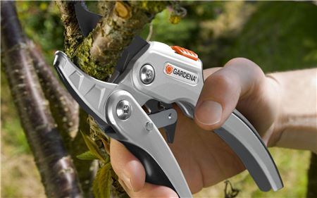 Grâce à la cisaille à cliquet GARDENA Comfort SmartCut, particulièrement confortable et puissante, il est possible de couper des branches et des rameaux plus résistants de manière extrêmement simple et ergonomique. En fonction du diamètre de la branche, la fonction de cliquet peut être activée (PowerPlus) afin que les branches plus fortes puissent être coupées tout aussi facilement et confortablement. Ceci est rendu possible par la transmission à cliquet « en trois mouvements ». Les lames des ciseaux sont affûtées avec précision. De plus, la lame supérieure est recouverte d’un revêtement anti-adhésif. La poignée confort en aluminium avec des composants souples se trouve particulièrement bien dans la main. Grâce à la serrure de sécurité d’une seule main, les ciseaux peuvent être facilement verrouillés et rangés en toute sécurité. Les ciseaux à cliquet Comfort peuvent couper des branches jusqu’à 25 mm de diamètre. La période de garantie de 25 ans garantit la plus haute qualité.
