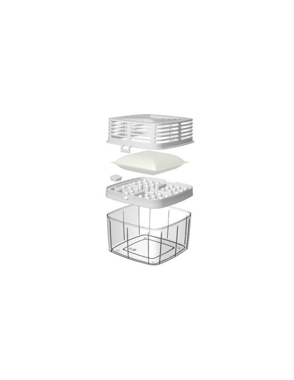 En absorbant l’humidité de l’air, les granulés libres formes d’abord une masse compacte et dure. Une fois que les granulés ont absorbés suffisamment d’humidité, ils se dissolvent progressivement et s’égouttent sous forme liquide dans le récipient de collecte. Dès que les granulés sont complètement dissous, le liquide recueilli au fond peut être facilement évacué par le dispositif de versement interne. il suffit ensuite d’insérer une nouvelle recharge Universal 450g.