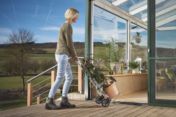 Le système de transport TS 600 est votre aide quotidienne pratique et légère pour les charges moyennes à lourdes jusqu’à 70 kg. Avec ses petites dimensions de pliage de 43 x 73 x 6 cm et son poids léger de seulement 3,9 kg, il est idéal en déplacement. Les roues et le plateau se plient et se déplient en une seule opération. Ainsi, le TS 600 trouve sa place dans tous les véhicules et reste à portée de main lorsque vous faites vos courses. Pour un transport sans effort et ergonomique, la hauteur de la poignée courbée en caoutchouc est réglable jusqu’à 105 cm en continu. Son grand plateau de 42 x 27 cm vous offre une surface de transport adaptée aux produits les plus courants. Les sangles de serrage intégrées offrent, grâce à leurs deux points d’attache, diverses possibilités de fixation. Les pneus anticrevaison du TS 600 conviennent à un usage à l’intérieur comme à l’extérieur.