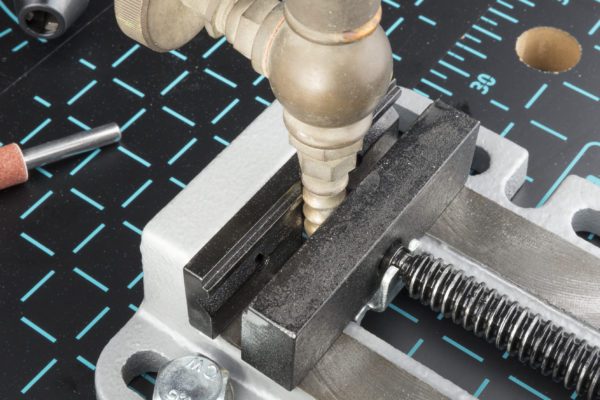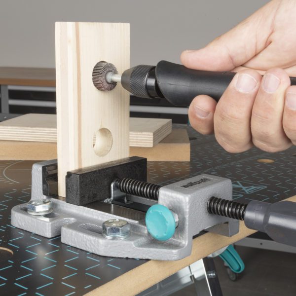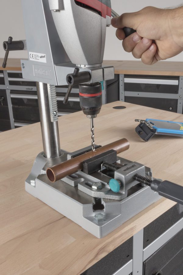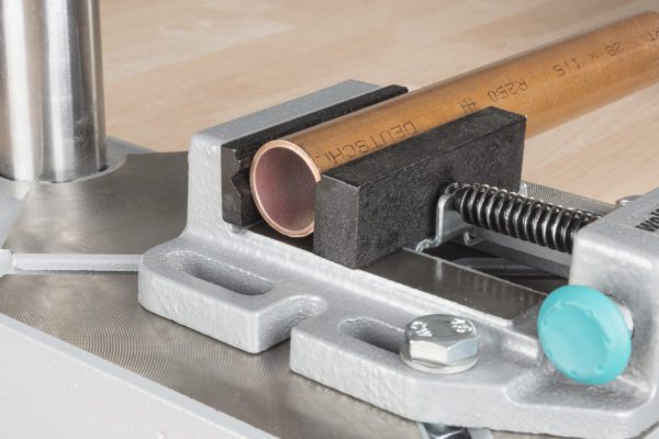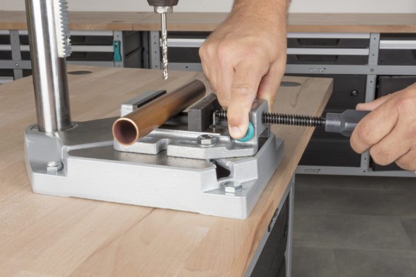 - mâchoires en acier avec rainures en » V » horizontales pour la fixation de pièces rondes