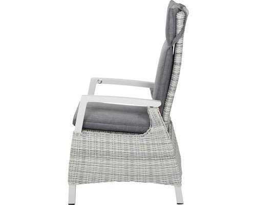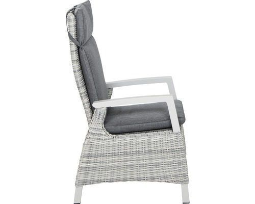 Le faible poids de la structure en aluminium fait du fauteuil réglable un meuble robuste mais facile à transporter sur votre terrasse. Le fauteuil est réglable individuellement. Il vous offre donc toujours la position assise idéale – que vous souhaitiez manger, lire ou simplement vous détendre. Vous pouvez régler le fauteuil très doucement et en continu au moyen de ressorts à pression de gaz. Stable, mais aérée et légère. Ce dernier est obtenu par la couleur blanche du cadre.