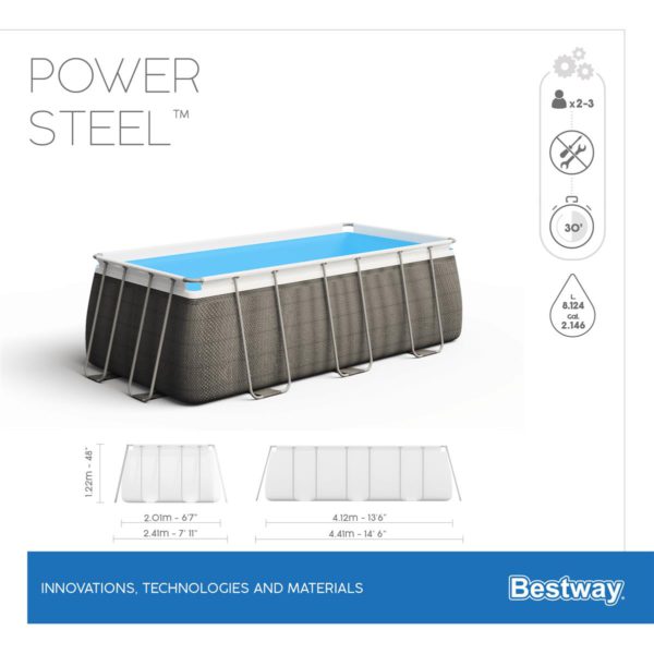 Power Steel™ Frame Pool 412 x 201 x 122 cm Kit Complet avec Pompe de Filtration Square Gris