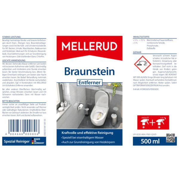 Le nettoyeur « Braunstein » de MELLERUD est le produit spécialement développé à cet effet, qui vous offre une solution pratique pour éliminer facilement ces décolorations disgracieuses.