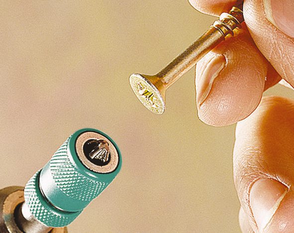 - un puissant aimant permanent retient l’embout et la vis