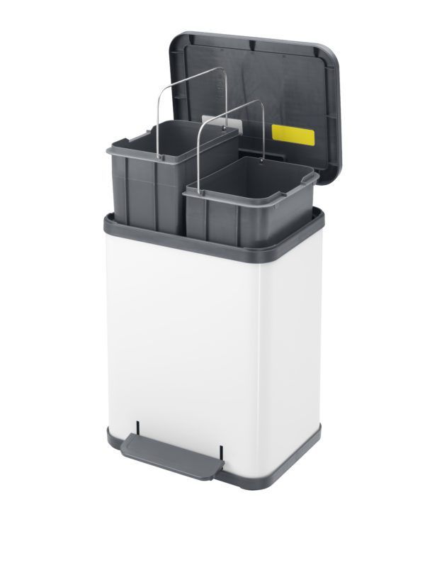 Poubelle à pédale à élément intérieur double, pour le tri de 2 catégories de déchets.
