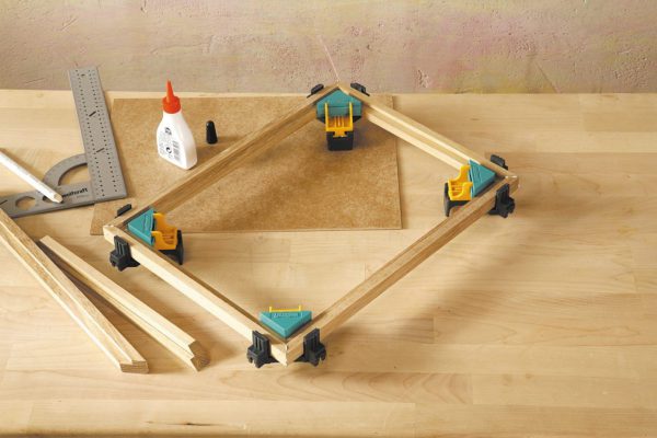 Immobilisation rapide et simple des planches et cadres à 90°, par exp. lors de la construction d’étagères, petits placards ou cardes