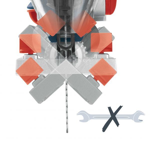 Avec la scie pendulaire KRAFTRONIC « KT-ST 750 », le nombre de coups peut être ajusté avec précision grâce à la commande électronique. La zone de travail est toujours éclairée de manière optimale par la lumière LED. Le sabot de scie en aluminium peut pivoter de 45° des deux côtés sans outil. Le changement de lame de scie (tige T et U) se fait sans outils.