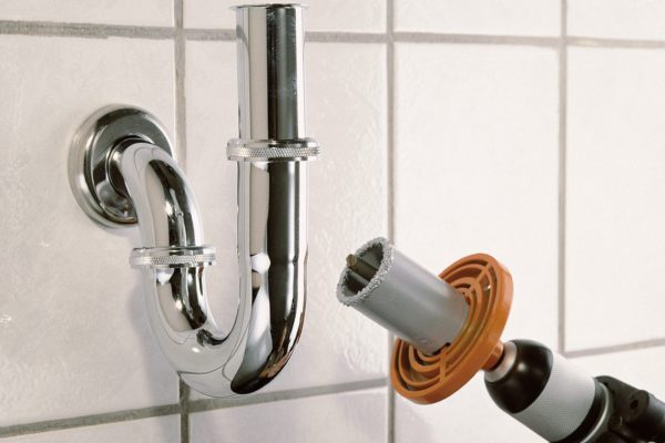 5 plaquettes de forage à pointe de carbure Ø 33, 53, 68, 73 et 83 mm, profondeur de coupe de 55 mm pour un forage précis des installations sanitaires et électriques dans la maçonnerie et la pierre
