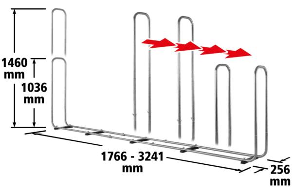 stockeur modulable avec 4 éléments d’extension de 425 mm de long pour une adaptabilité à l’espace disponible disponible