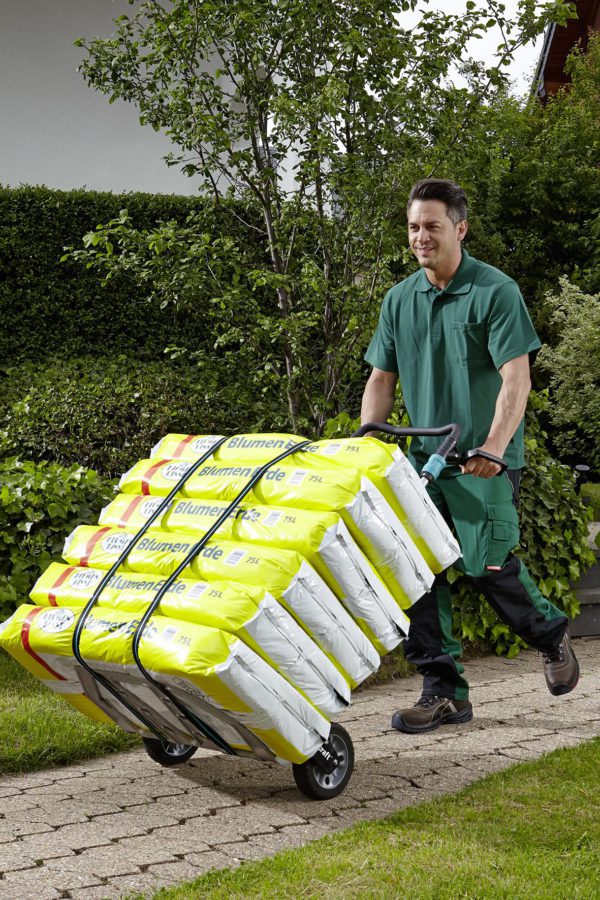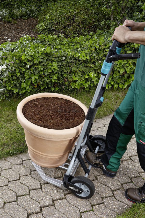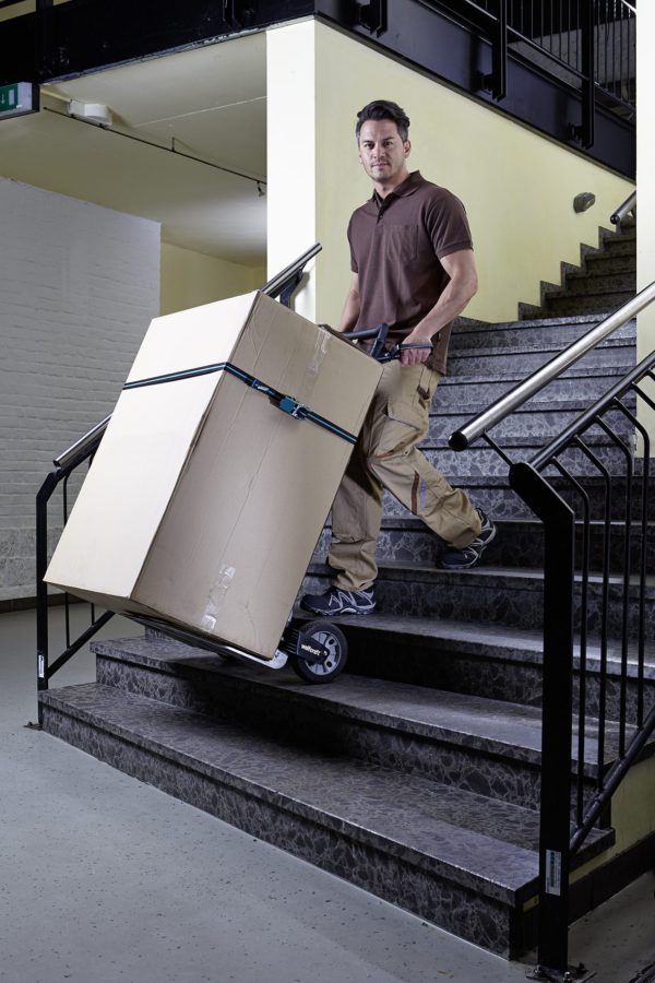 Le système de transport TS 1500 permet d’aborder les déménagements, les projets de construction ou les grandes livraisons de marchandises avec plus de sérénité. Ce diable pour charges lourdes porte facilement jusqu’à 200 kg et peut ainsi, dans une certaine mesure, remplacer un transpalette. La poignée escamotable permet d’atteindre une hauteur de travail idéale de 124 cm qui ménage le dos. Son plateau aux dimensions généreuses de 59 x 37 cm permet de transporter facilement des appareils électroménagers, comme des machines à laver ou des réfrigérateurs. Son panneau arrière incurvé s’adapté parfaitement au transport de produits arrondis, tels que des pots de fleurs, des bonbonnes de gaz ou des troncs d’arbre, qui sont maintenus en place de manière sûre. L’aide au basculement permet d’amener le TS 1500 sans effort en position de roulage. Grâce à des roues anti-crevaison expansées de 20 cm de diamètre munies de deux roulements à billes intégrés chacune, le TS 1500 est un diable solide qui franchit sans encombre les escaliers et qui peut être chargé jusqu’à 100 kg. Il vous permet aussi de grimper aisément les pentes légères. Une fois replié, avec ses 60 x 99 x 11 cm, il se glisse dans le coffre d’une voiture ou se range dans le garage sans l’encombrer.