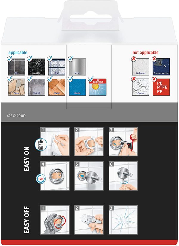 - Non applicable sur le papier peint, le plâtre et toute autre surface à revêtement non adhésif
