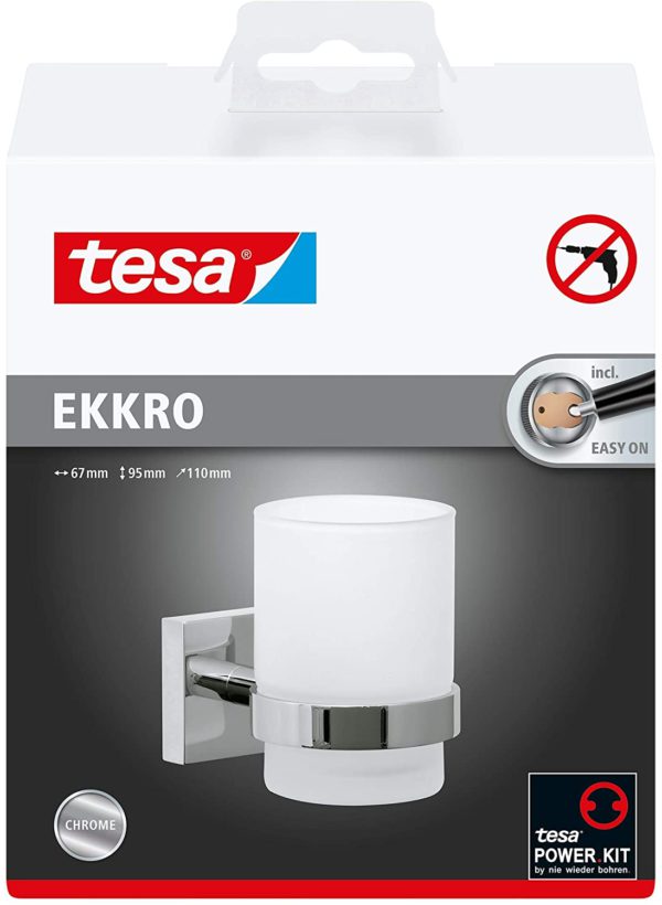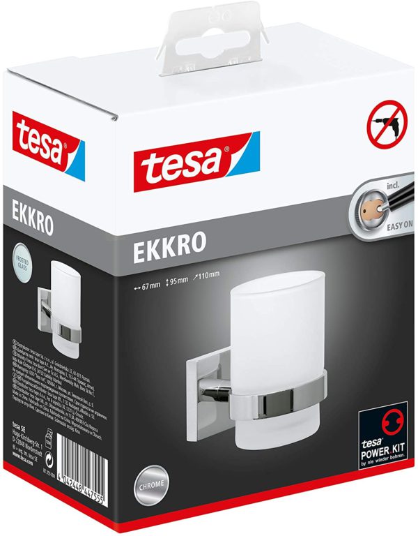 Ce porte-gobelet tesa® Ekkro peut être installé facilement sans percer de trous pour ne pas endommager vos surfaces. Il peut être retiré à tout moment sans laisser de traces, et repositionné où vous le souhaitez avec un nouvel adaptateur BK20. Un accessoire élégant en verre satiné et métal chromé.