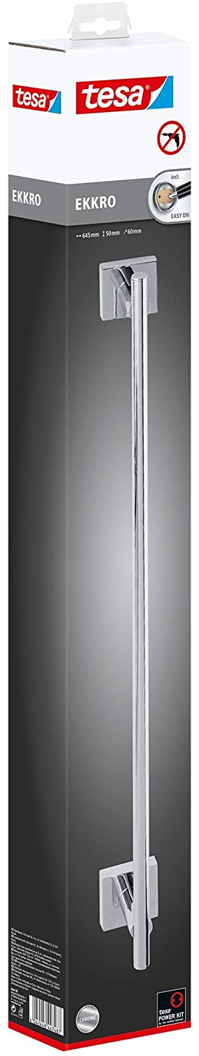 L’installation de ce porte-serviettes mural tesa® Ekkro se fait sans endommager vos surfaces. Grâce à la technologie adhésive tesa® Power.Kit, installez facilement votre porte-serviettes sans percer de trous et en laissant simplement durcir la colle pendant 12 heures. Avec sa finition chromée brillante, c’est l’accessoire idéal pour faire sécher vos serviettes. Il peut être retiré à tout moment sans laisser de traces, et repositionné grâce à un nouvel adaptateur BK20-2.