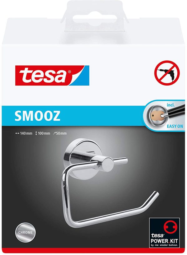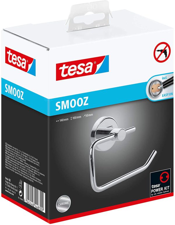 Le dérouleur papier toilette tesa® Smooz est un accessoire élégant qui s’installe en un clin d’œil. Installation sans perçage pour ne pas endommager vos surfaces. Cet accessoire peut être retiré facilement sans laisser de traces et repositionné grâce à un nouvel adaptateur BK20.